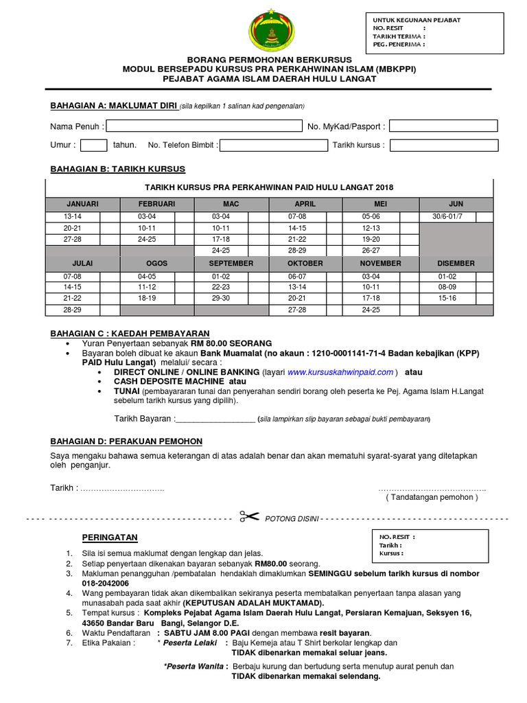 Borang Claim Kursus Kahwin : Kursus Kahwin Johor Kursus Pra Perkahwinan Islam Johor Di Pertubuhan Peladang Kulai Pada 6 7 Julai 2019 Anda Yang Layak Boleh Claim Balik Yuran Rm120 Melalui Bantuan Insentif Kursus Perkahwinan : Terbaik di ttdi, kuala lumpur dan putrajaya.. *urusan claim yuran percuma telah ditutup oleh pejabat agama daerah di seluruh johor berkuatkuasa 31 disember 2019. 61 540 просмотров 61 тыс. Lagi berapa puluh hari sahaja ni nak kahwin. Kursus kahwin diiktiraf seluruh malaysia dikeluarkan oleh jawi. Kursus kahwin meru ipoh lokasi igb training & consultancy medan meru bestari ipoh, perak yuran rm100 je!