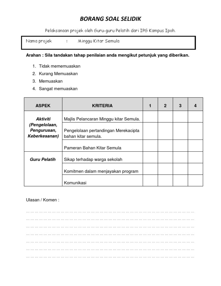 Contoh borang soal selidik kerja berpasukan la contoh.