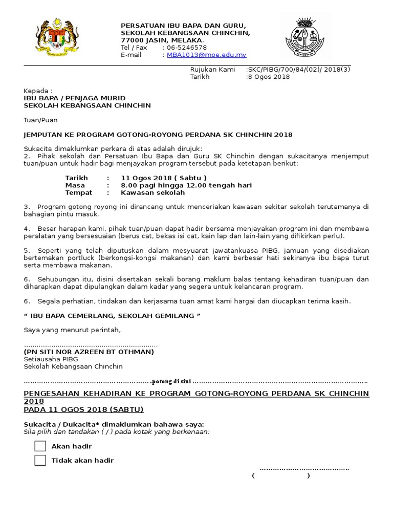 Program mini gotong royong dengan segala hormatnya semua dijemput hadir ke program gotong royong yang dianjurkan oleh persatuan penduduk seksyen 5 ,bdr… text of contoh surat jemputan.