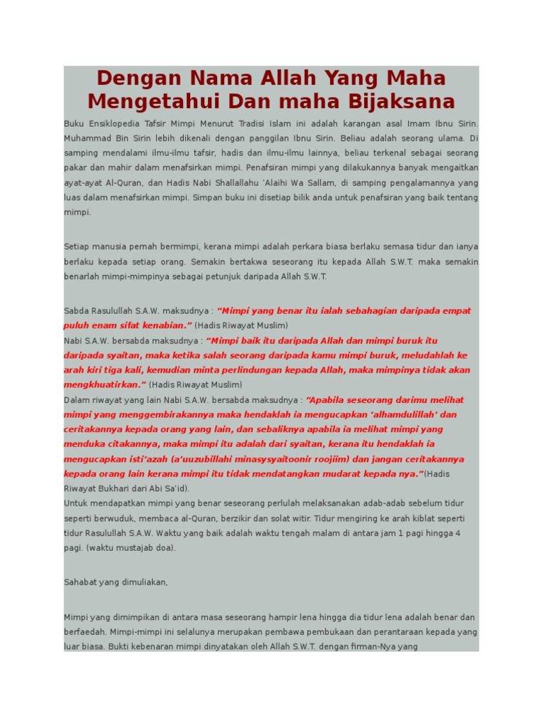 Kesalahan terbesar saat kita hendak mengintrepretasikan sebuah mimpi adalah. Namun, bahkan mimpi buruk pun bisa merupakan hasil dari sesuatu atau seseorang yang ada dalam kehidupan nyata. Mimpi mengenakan pakaian indah, bermakna akan mendapat kerugian besar. Salah satu mimpi yang dipercaya memiliki maksud tertentu adalah mimpi bertemu dengan orang yang telah meninggal dunia. Mimpi memang tidak bisa diprediksi. Pasalnya, ini adalah salah satu pengalaman tidur yang menurut mitosnya memiliki tafsir negatif. Cara mengetahui nomor hp seseorang melalui nama ini mungkin sangat bermanfaat. 226.mimpijatuh ke dalam sebuah selokan : Salah satu mimpi yang dipercayai mempunyai maksud tertentu adalah mimpi bertemu dengan orang yang telah meninggal dunia. Masih sangat merindukan orang tersebut. Maksud mimpi air mimpi melihat air 1) mimpi melihat air ais, salji dan air beku boleh menyebabkan kesukaran, kesedihan dan siksaan, ke. Menurut pakar kesehatan tidur alesandra woolley, munculnya seseorang dalam mimpi kita bisa saja terjadi karena belakangan ini kita banyak menghabiskan waktu dengannya. 187.mimpi melihat gedung yang runtuh :