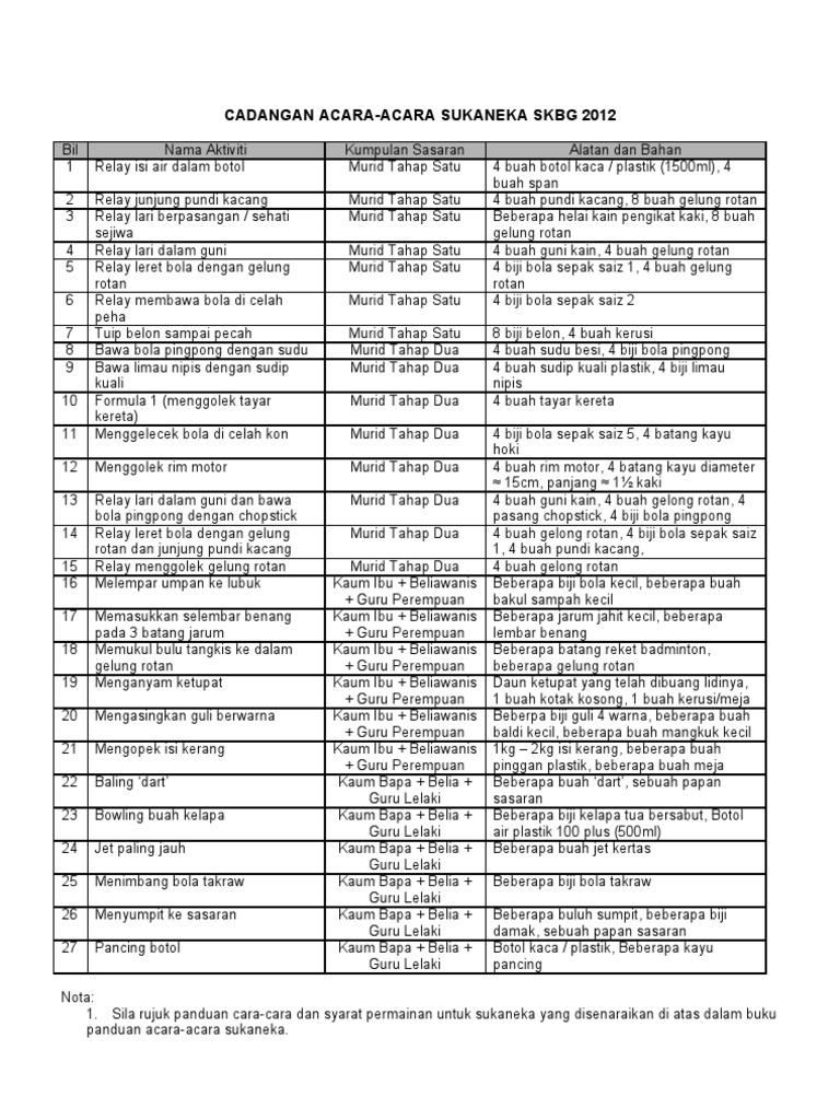 Related : Contoh Senarai Acara Sukaneka / 12 Idea Menarik Untuk Sukaneka Murid Dan Dewasa Layanlah Berita Terkini Tips Berguna Maklumat / Documents similar to senarai permainan sukaneka..